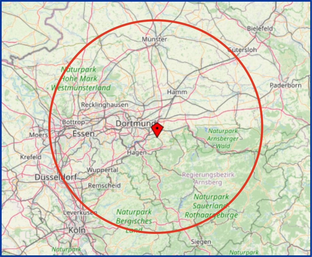 Ist der Prüfort außerhalb des Kreises aber innerhalb des Regierungsbezirkes Arnsberg berechnen wir 10 EUR Anfahrtskosten, für jeden anderen Auftrag an einem Ort außerhalb des Kreises legen wir die Anfahrtskosten bei Auftragserteilung fest.